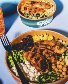 At Flameo, you can create your own bowl, salad, or poutine, just the way you like it, with fresh ingredients, signature sauces, and flame-grilled chicken right before your eyes!